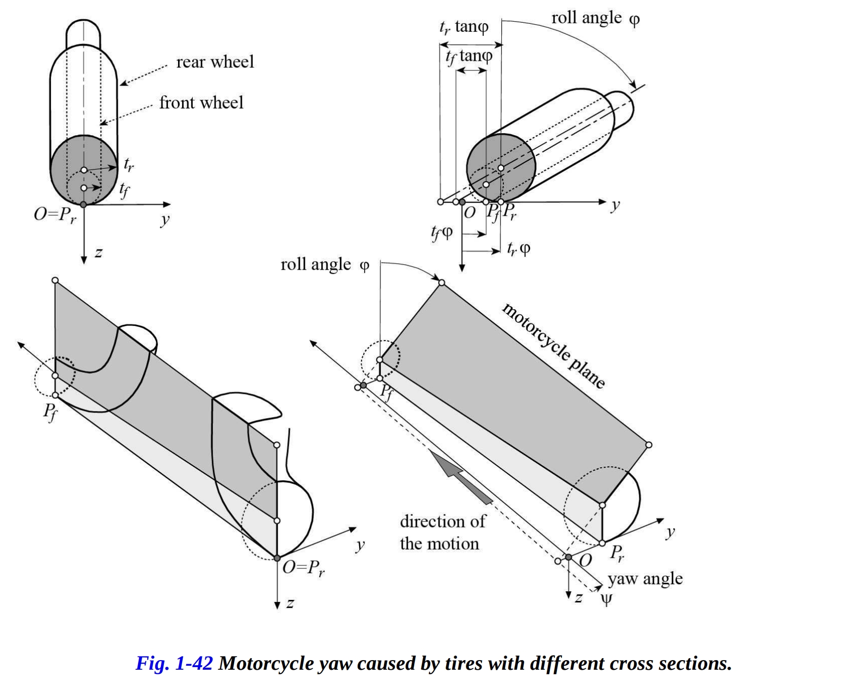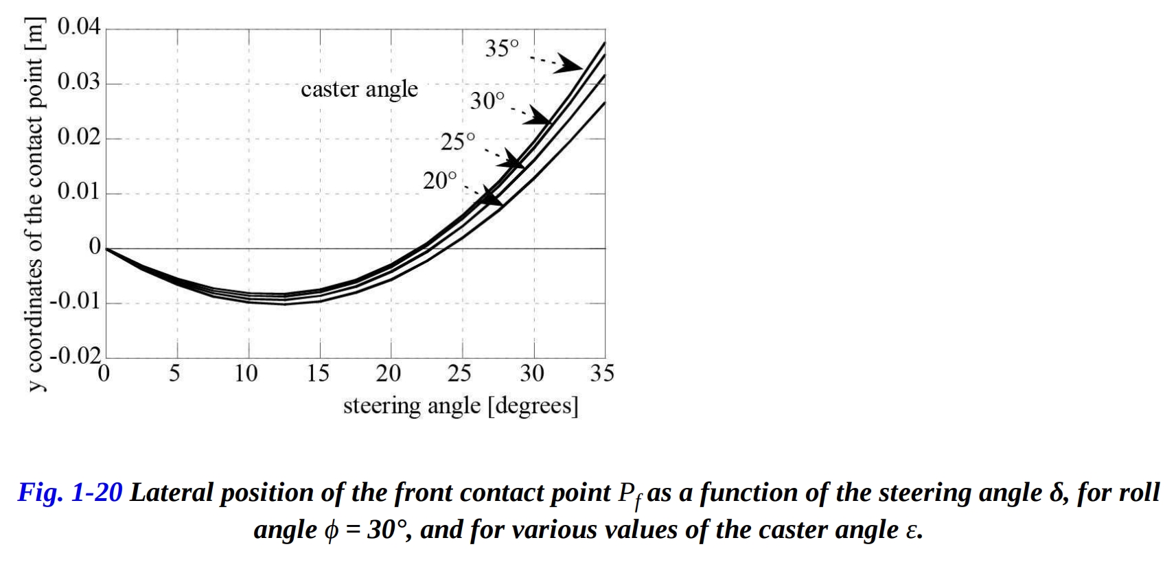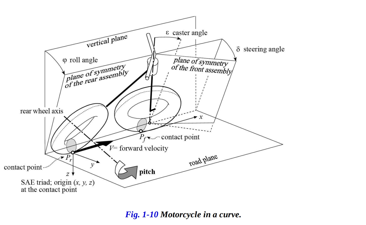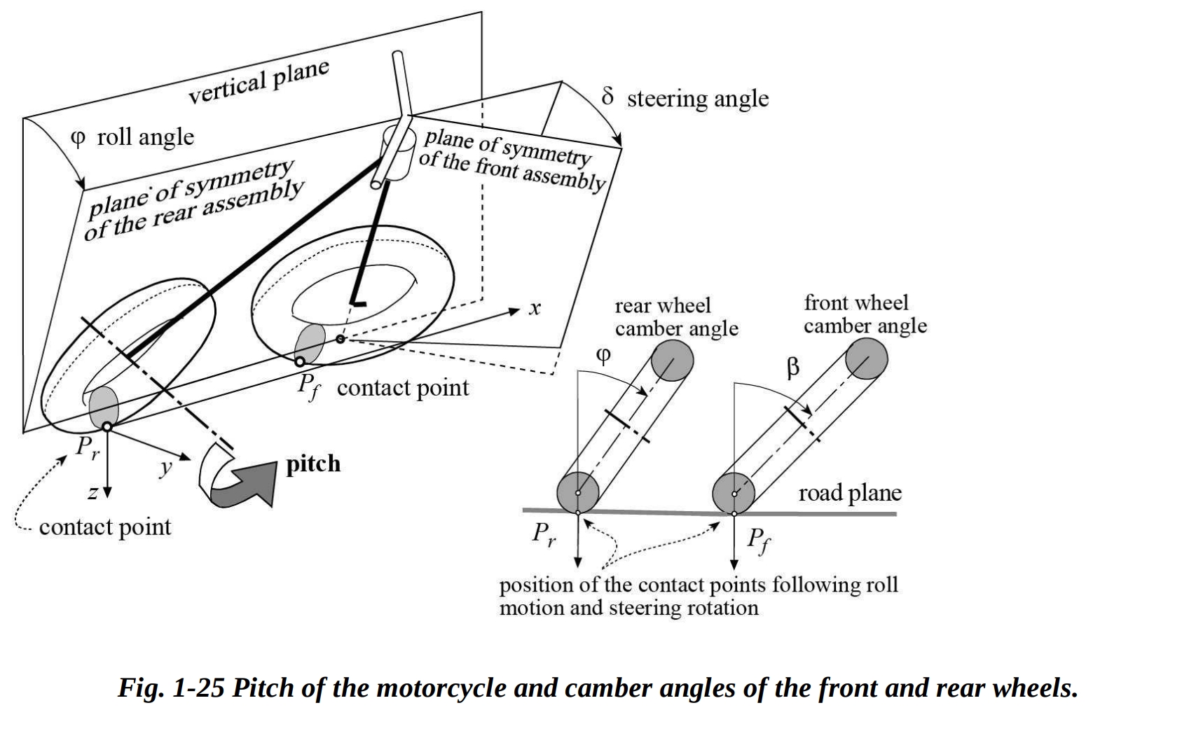 モーターサイクルの運動学的研究は、特にそのモーターサイクルの動的挙動に及ぼす影響に関連して重要です。したがって、この章では、運動学的研究に加えて、モーターサイクルの動的挙動のいくつかの簡単な例を報告し、運動学的特異点がモーターサイクルの方向安定性と操縦性にどのように影響するかを示します。