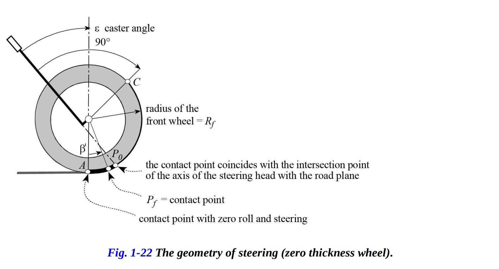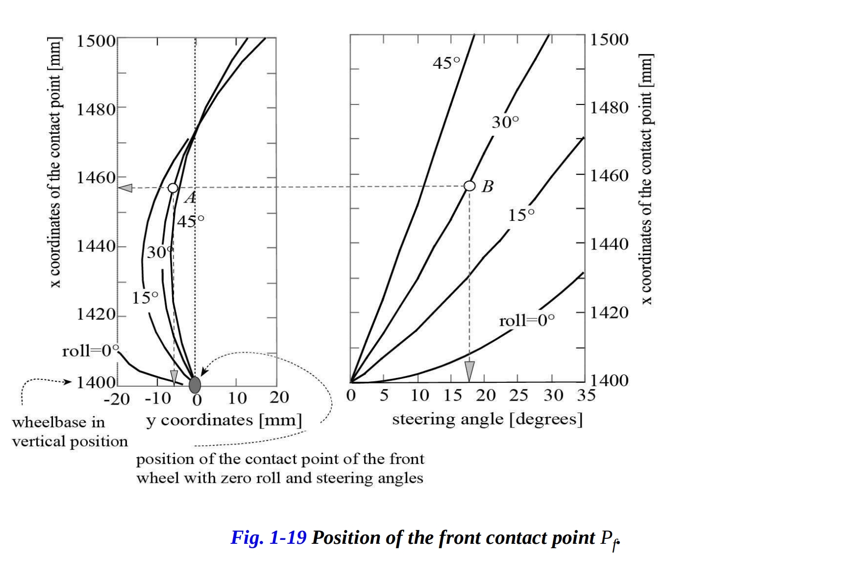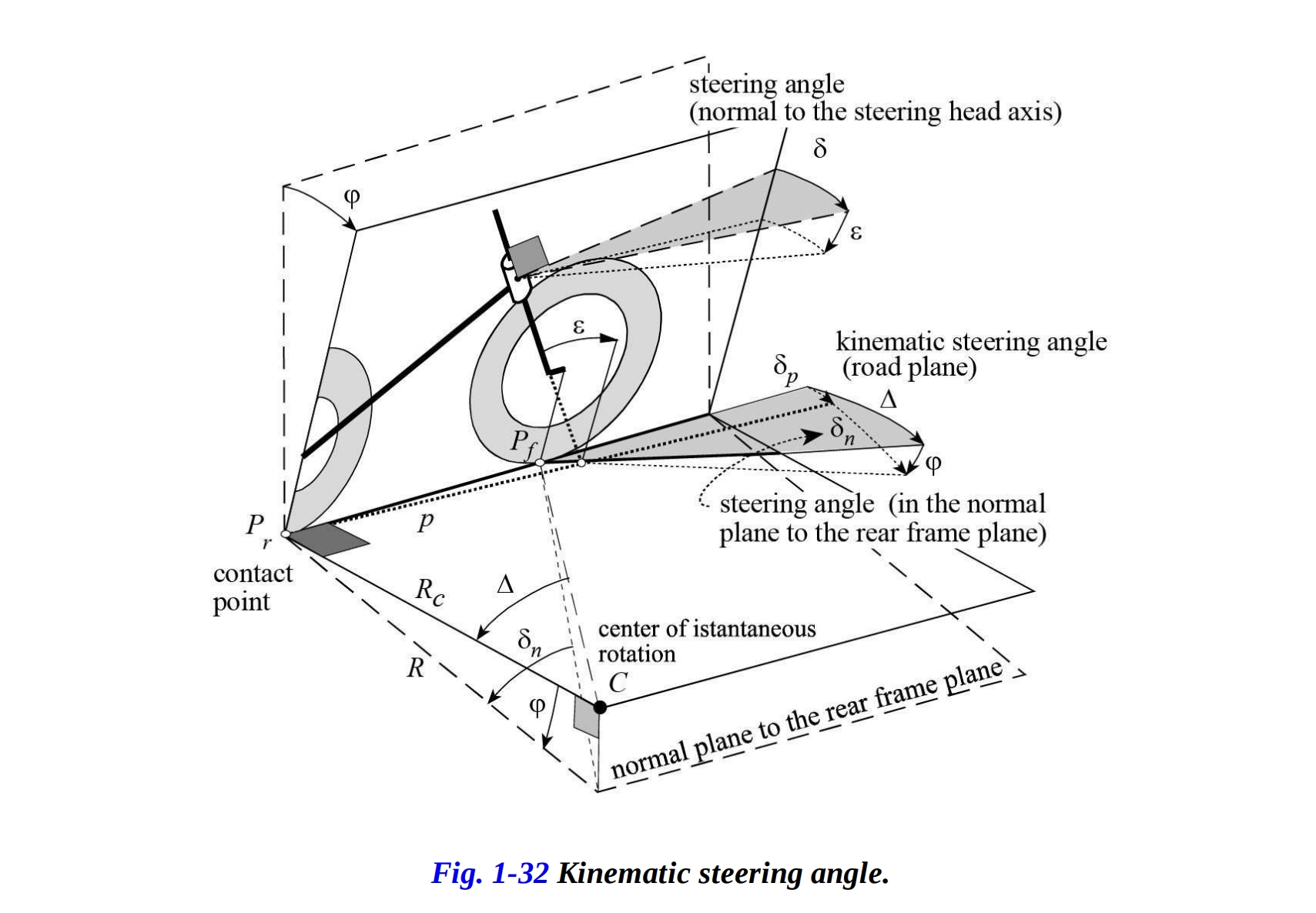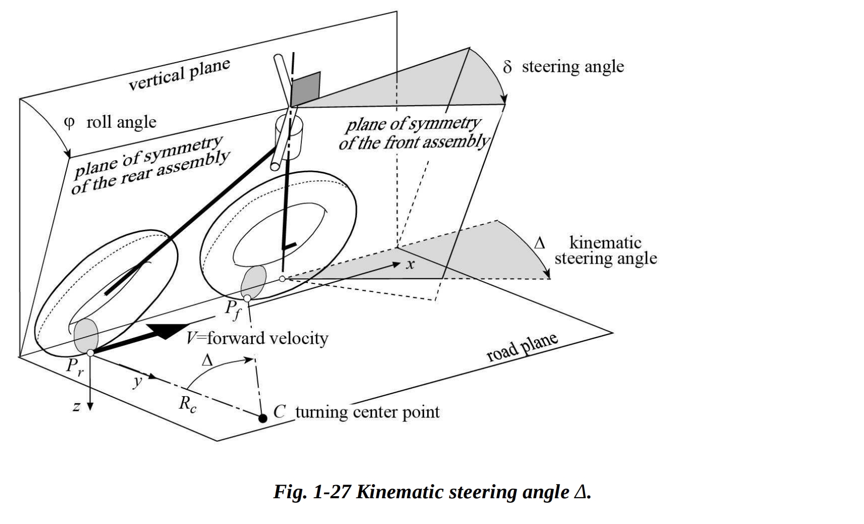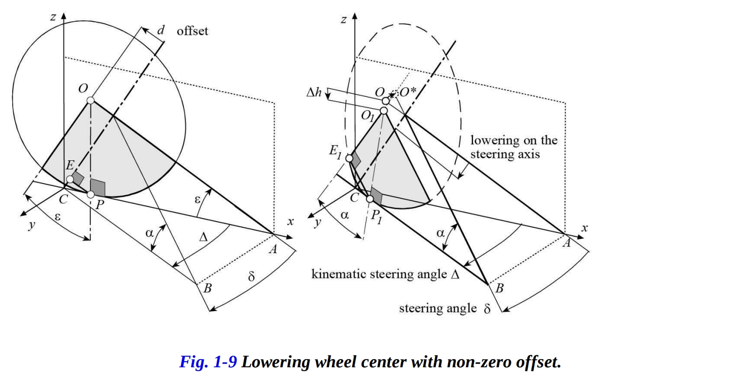 図1-8に示すように、ステアリング角δがゼロの場合、ホイールは完全に垂直でxz平面にあります。