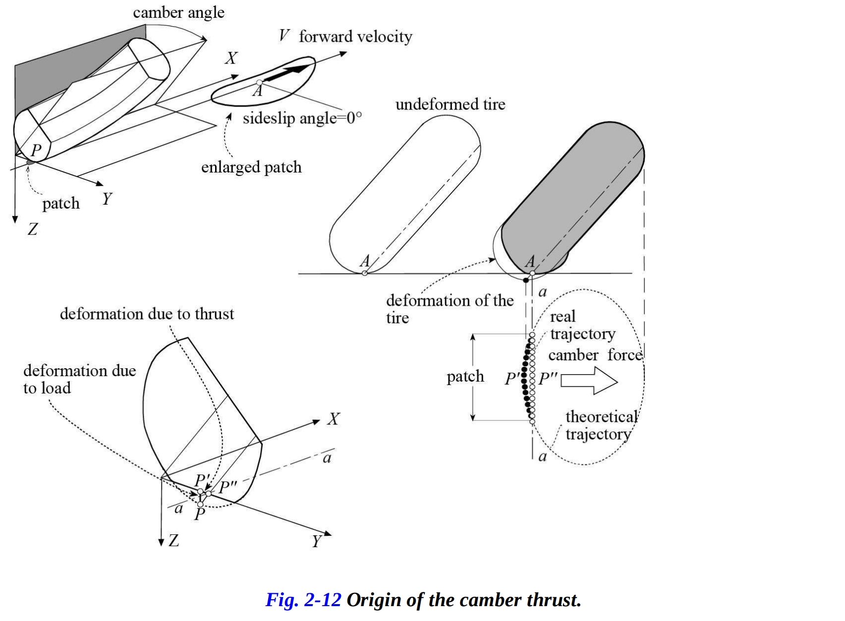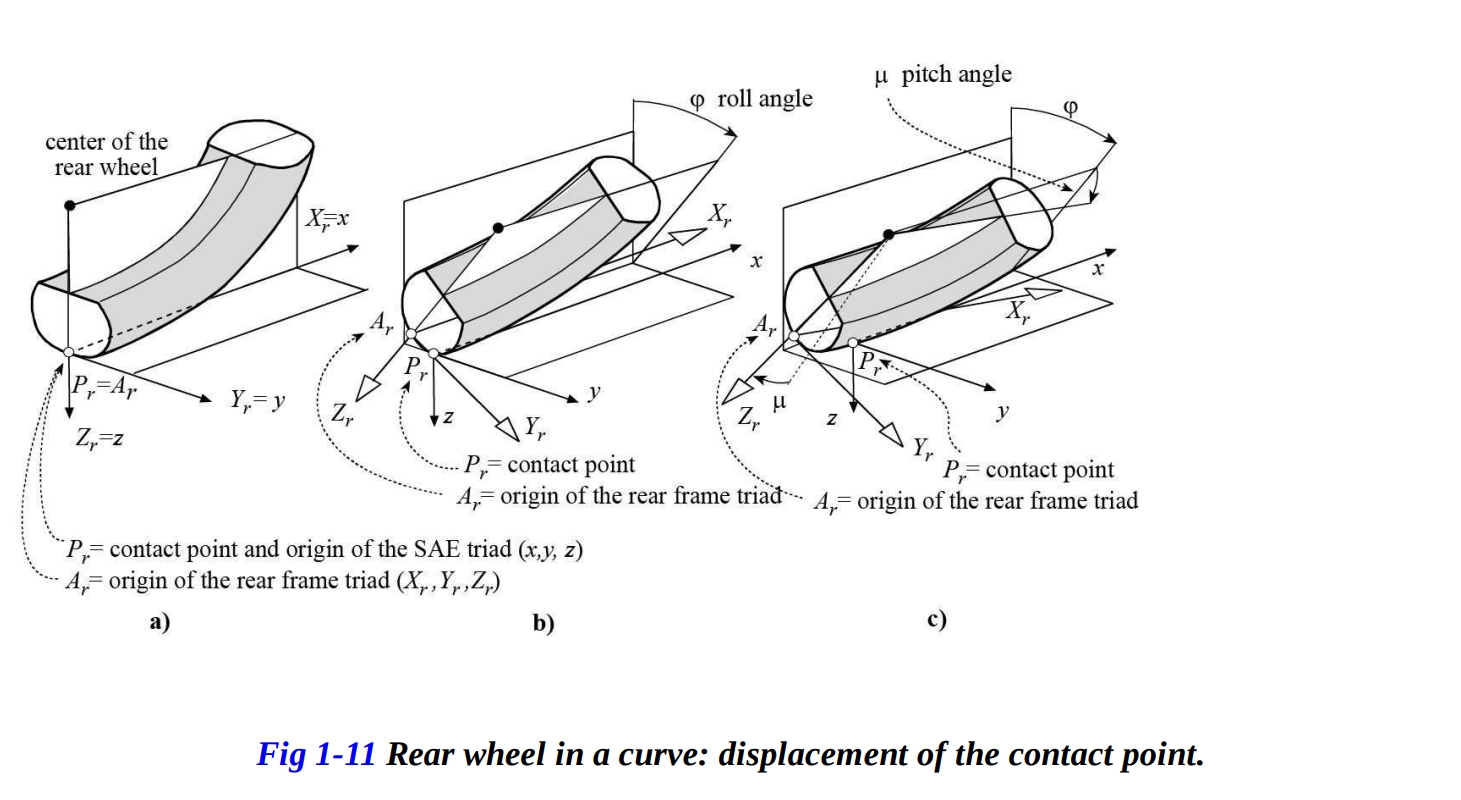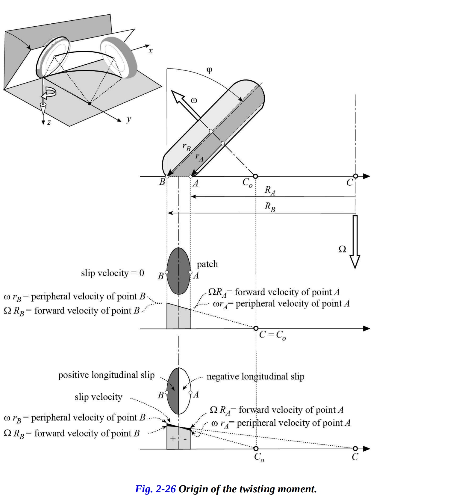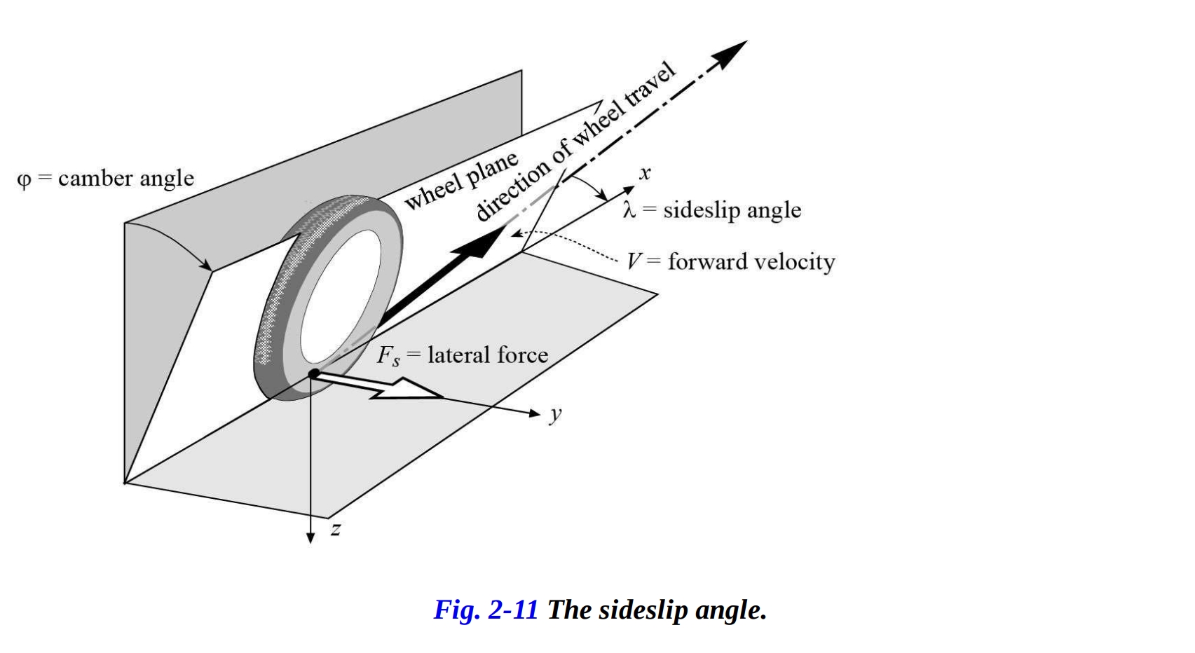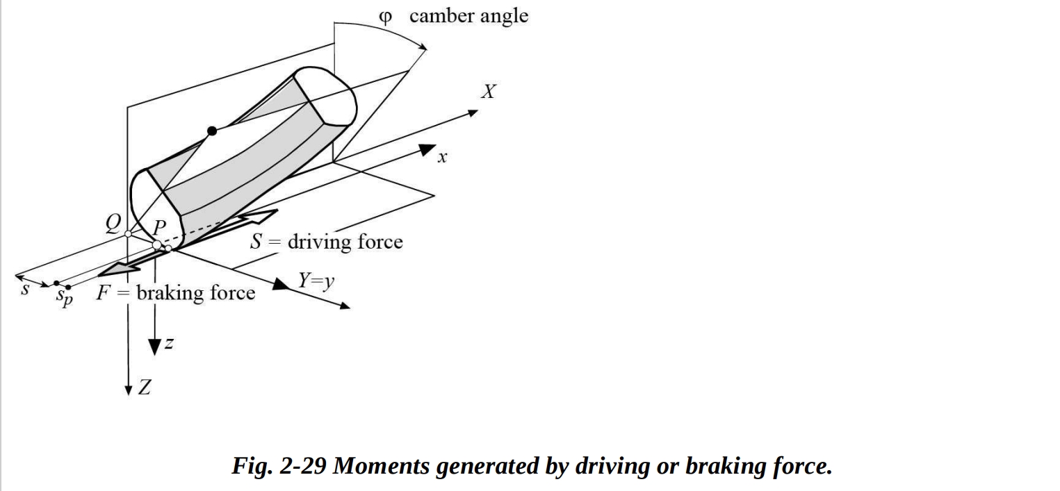 図1-8に示すように、ステアリング角δがゼロの場合、ホイールは完全に垂直でxz平面にあります。