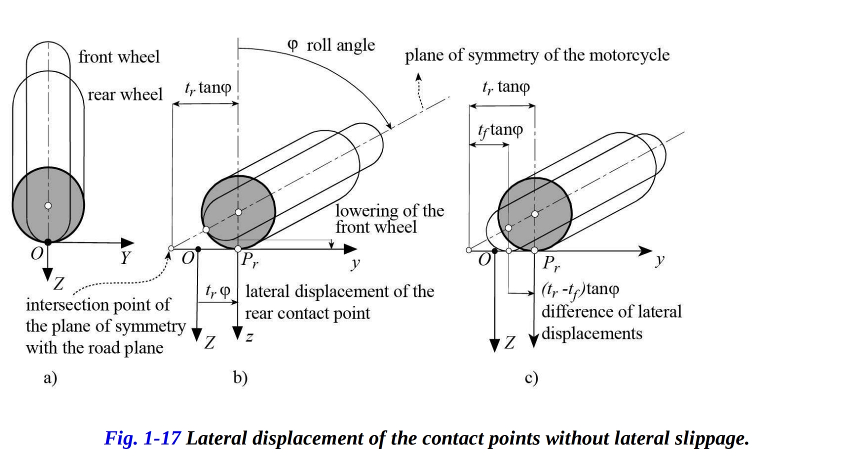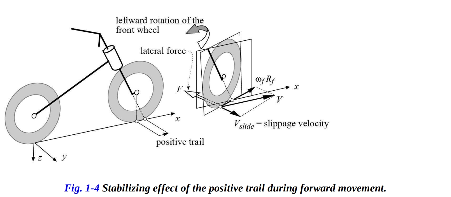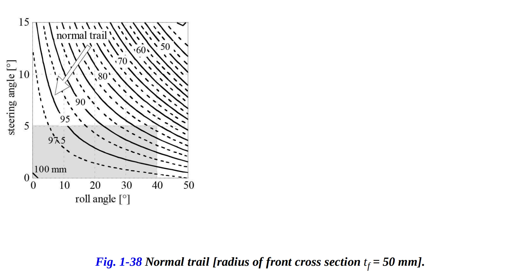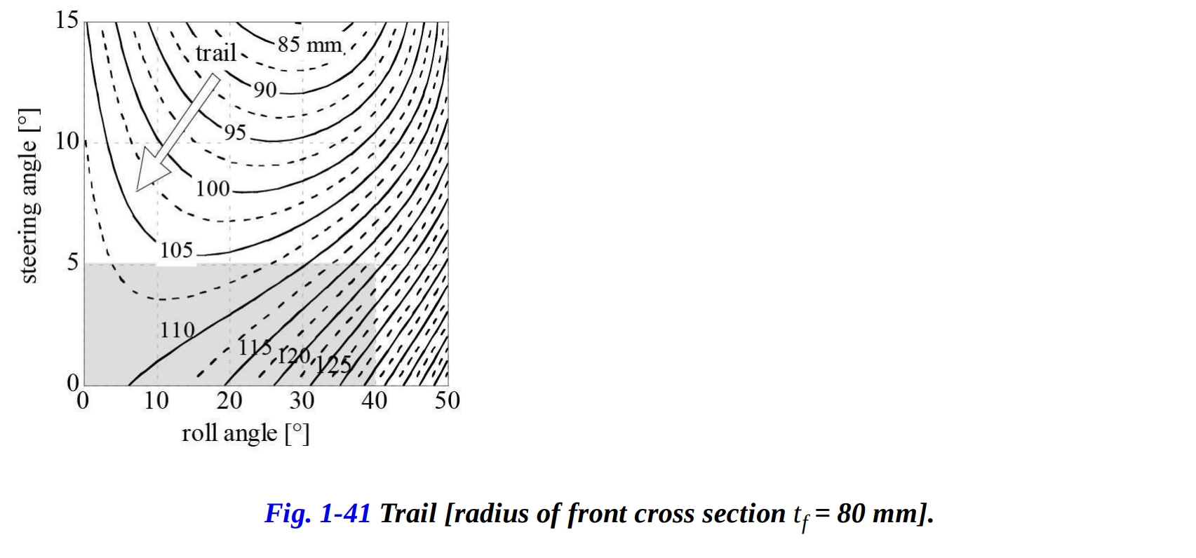 ここで、 は前輪の法線トレイルを表し、 は後輪の法線トレイルと考えることができます。