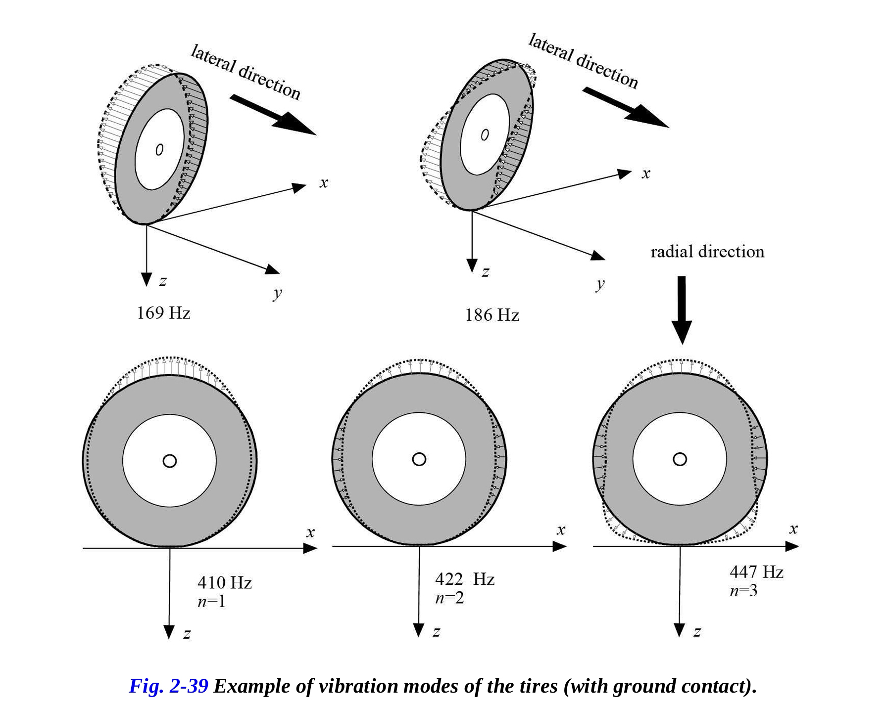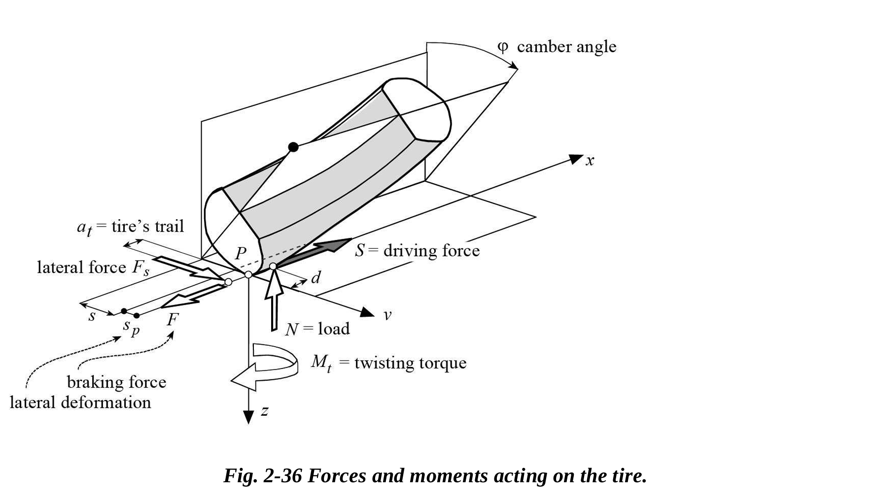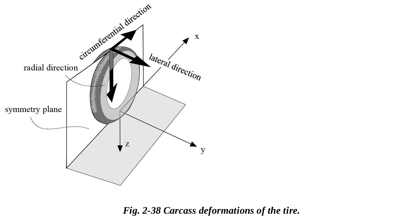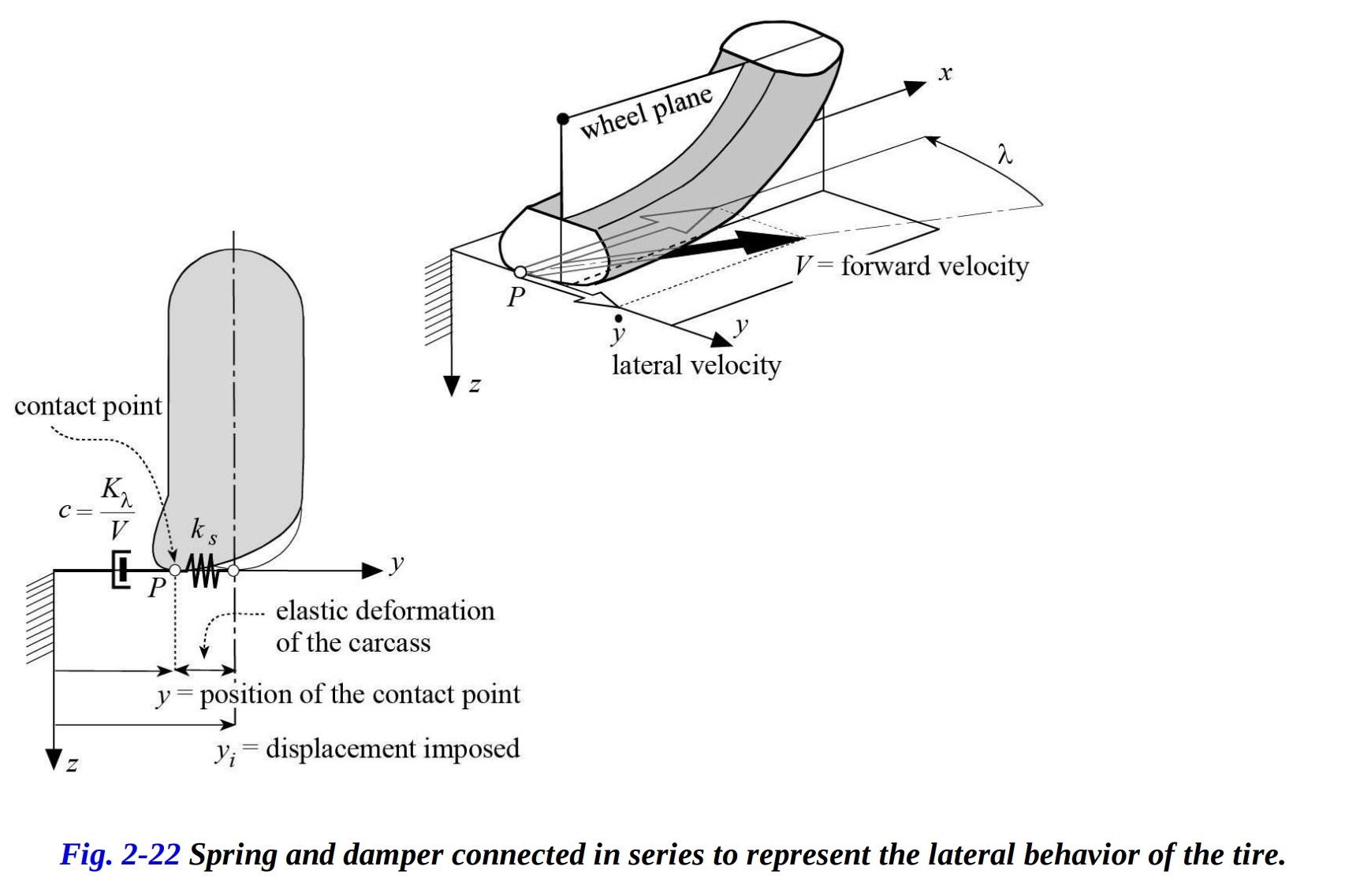 これらの考慮事項は、タイヤが滑りなしで移動すると仮定して定式化されています。ただし、現実には、タイヤの運動は単なる転がりプロセスだけではありません。縦方向力(駆動力およびブレーキング力)および横方向力の発生には、路面状況に応じて、縦方向および横方向のいくらかの滑りが必要です。したがって、自由度の数は7になります。