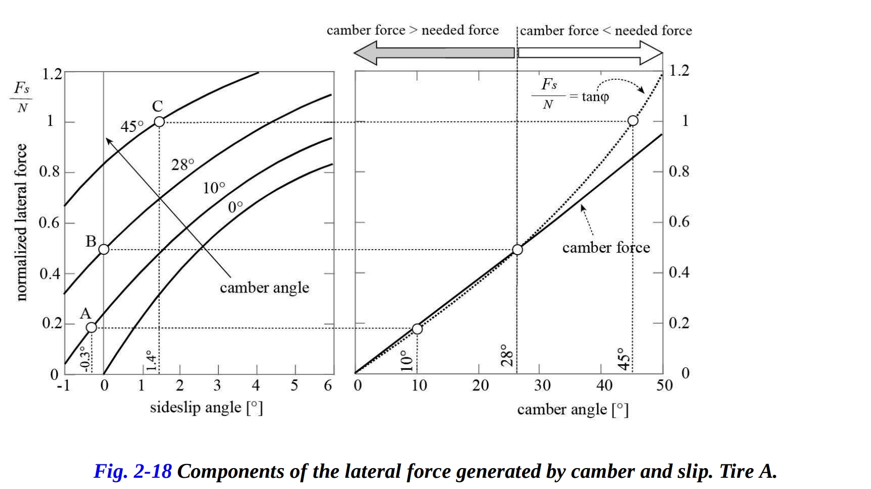 曲線運動中、道路のグリップは、車輪平面と道路の交差線に垂直な横方向の摩擦力によって確保されます。