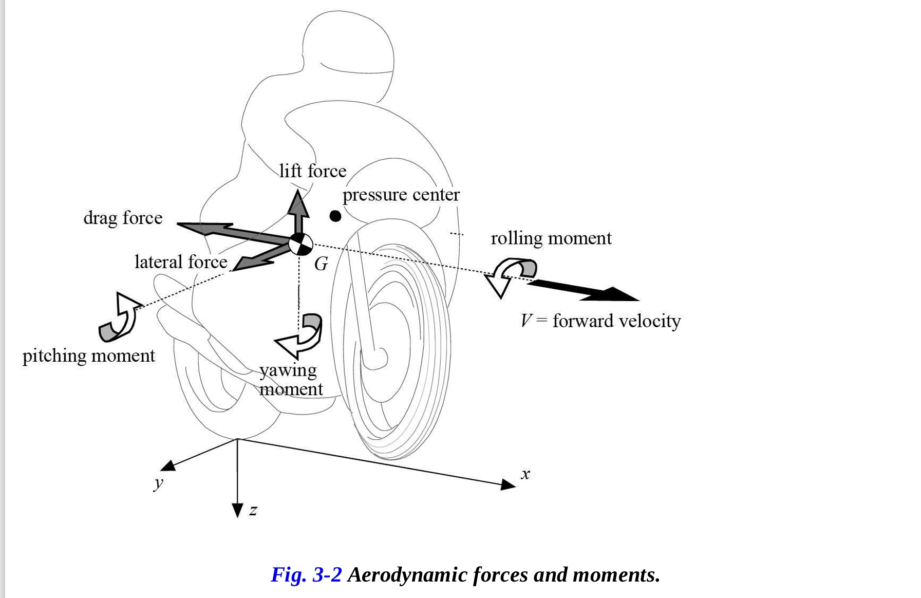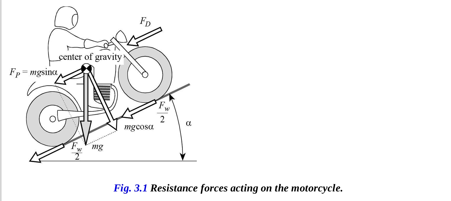 図3-17に示すように加速するバイクを考慮し、転がり抵抗力 を無視できると仮定した場合、運動方程式は次のように書けます。