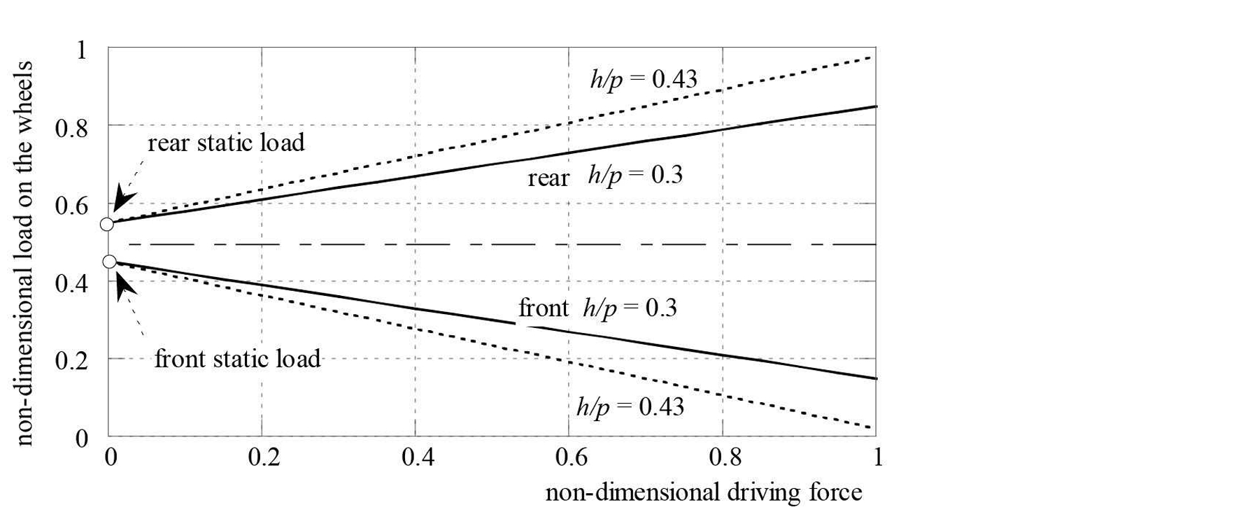 ここで、 は前輪への負荷であり、 は後輪への負荷です。